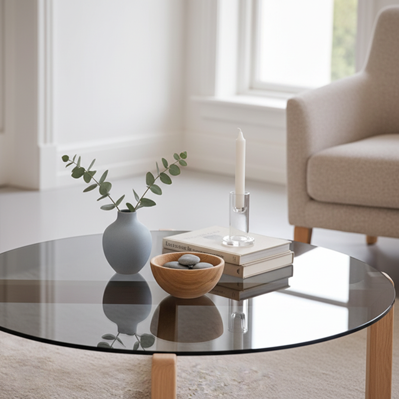 Kaikki pöytälasit valmistetaan mittatilauksena, reunat hiotaan kiiltäviksi ja turvallisiksi, ja tarvittaessa lasiin voidaan tehdä erikoismuotoja. Jos tarvitset suorakulmaisen pöydän lasin, siirry tähän tuotteeseen.