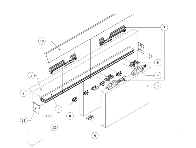 Väliovi liukuovena, asennetaan seinän päälle. Ovessa on laadukkaat hidastimet molempiin suuntiin. Ovi on yläkantoinen, eli lattiassa ei ole kiskoa, ainoastaan pieni ohjuri oven sisällä lattiassa. Yläkantoinen ovi on tyylikäs ja viimeistelty kokonaisuus ja sitä on saatavana usealla eri ovityypillä.