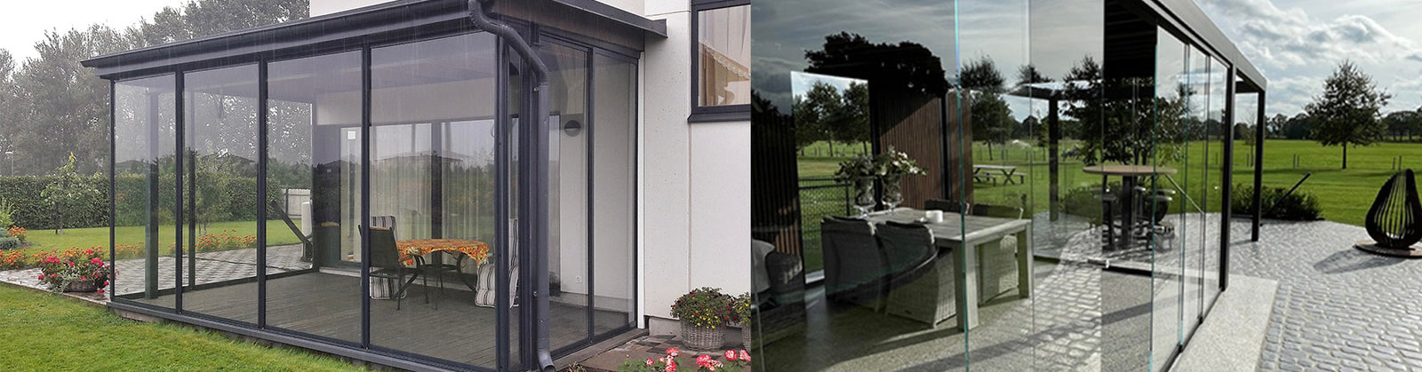 Valikoimastamme löydät kaksi vaihtoehtoa: kehyksetön (karmiton) terassilasitus, joka säilyttää esteettömät näkymät, sekä kehyksellinen terassilasitus, joka tarjoaa tiiviimmän ja suojaavamman ratkaisun. Molemmat järjestelmät voidaan toteuttaa sekä kiinteinä että liukuvina elementteinä.
