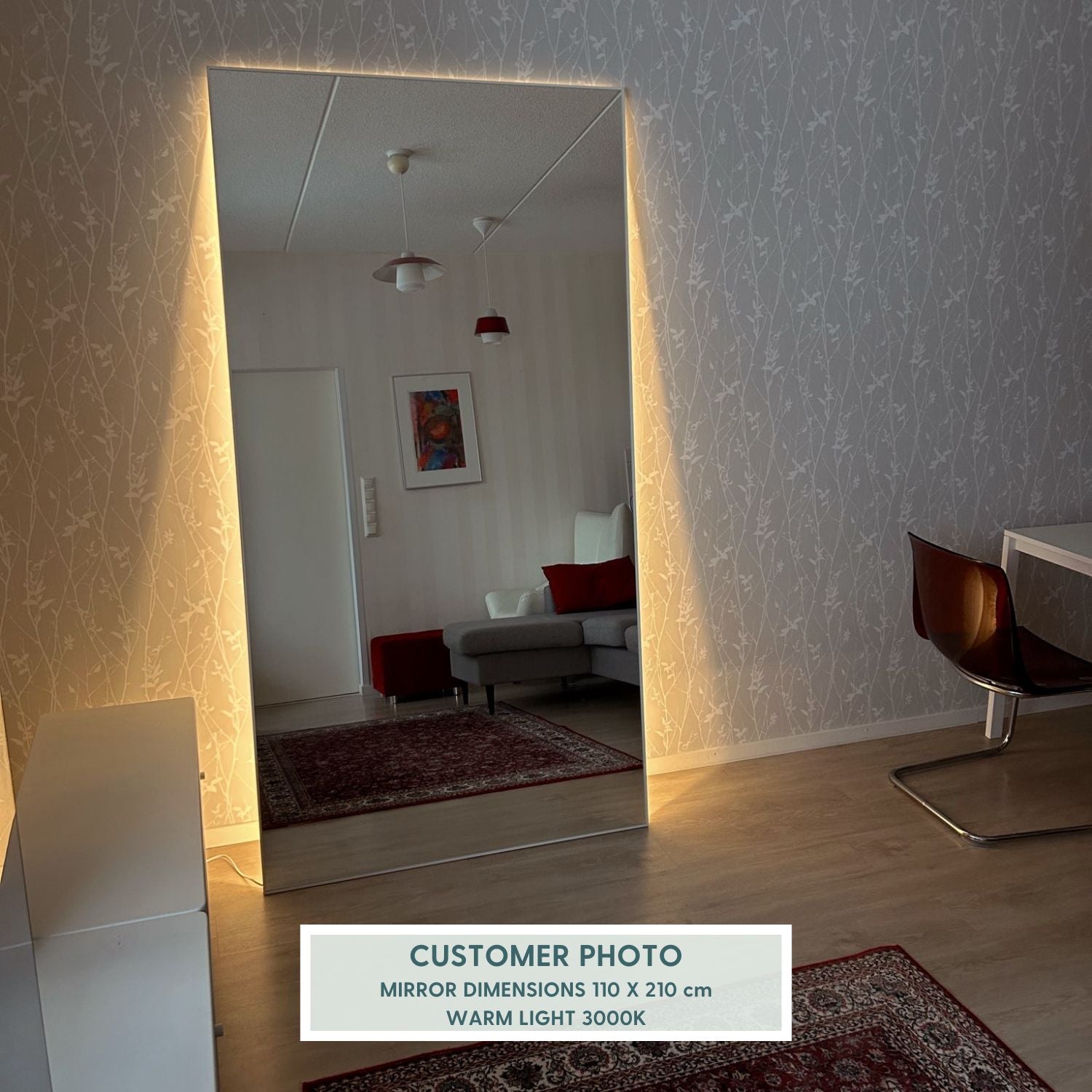 Aitta-peilin LED-valo valaisee pehmeästi peilin takana olevan seinän, ja luo ihanan tunnelman koko huoneeseen.