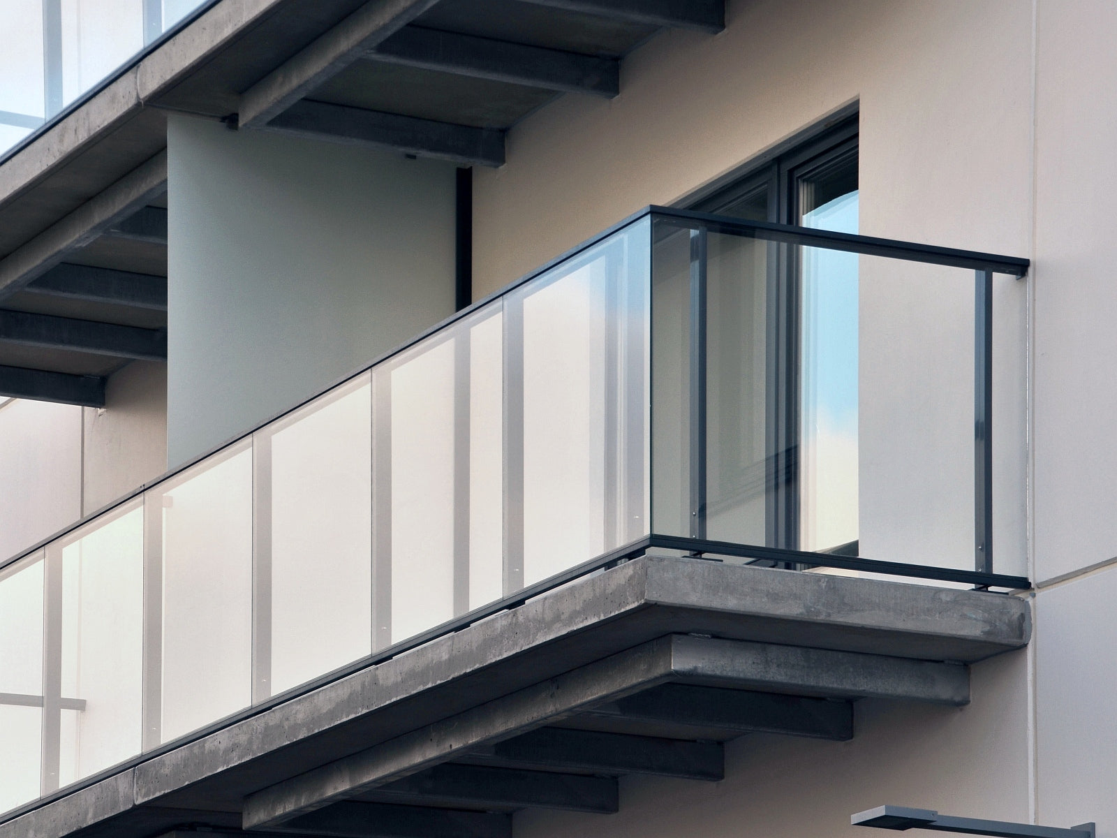 Lasit asennetaan kaiteen ulko- tai sisäpuolelle. Kaide voidaan asentaa sekä lattian päälle, että rakenteen kylkeen.
