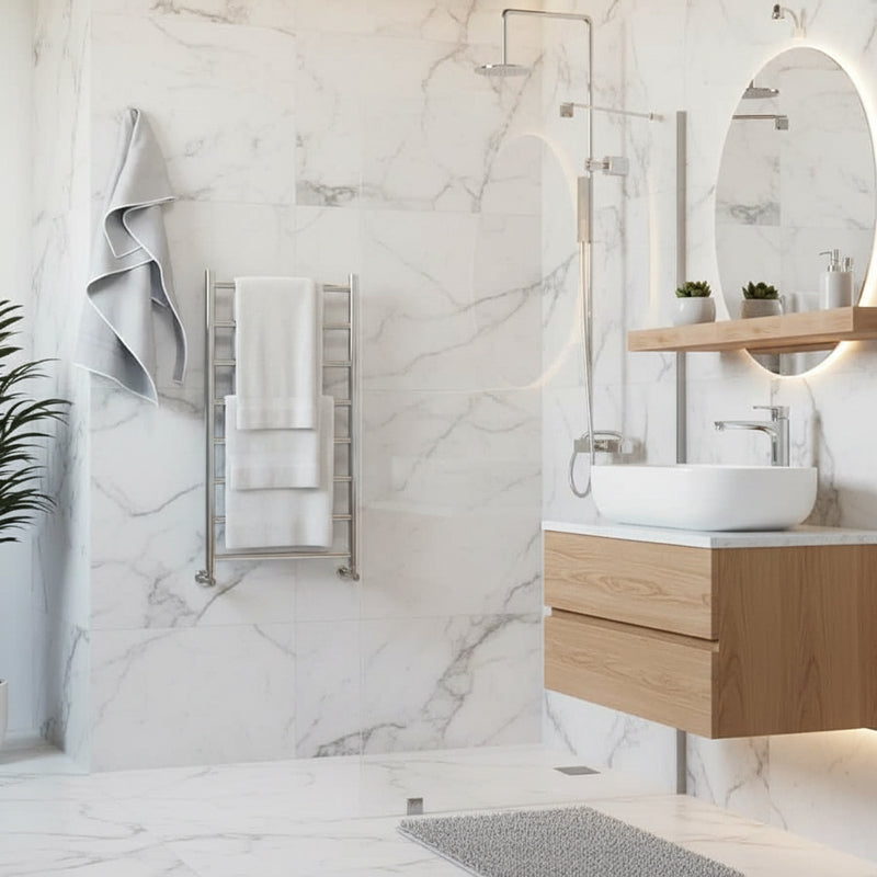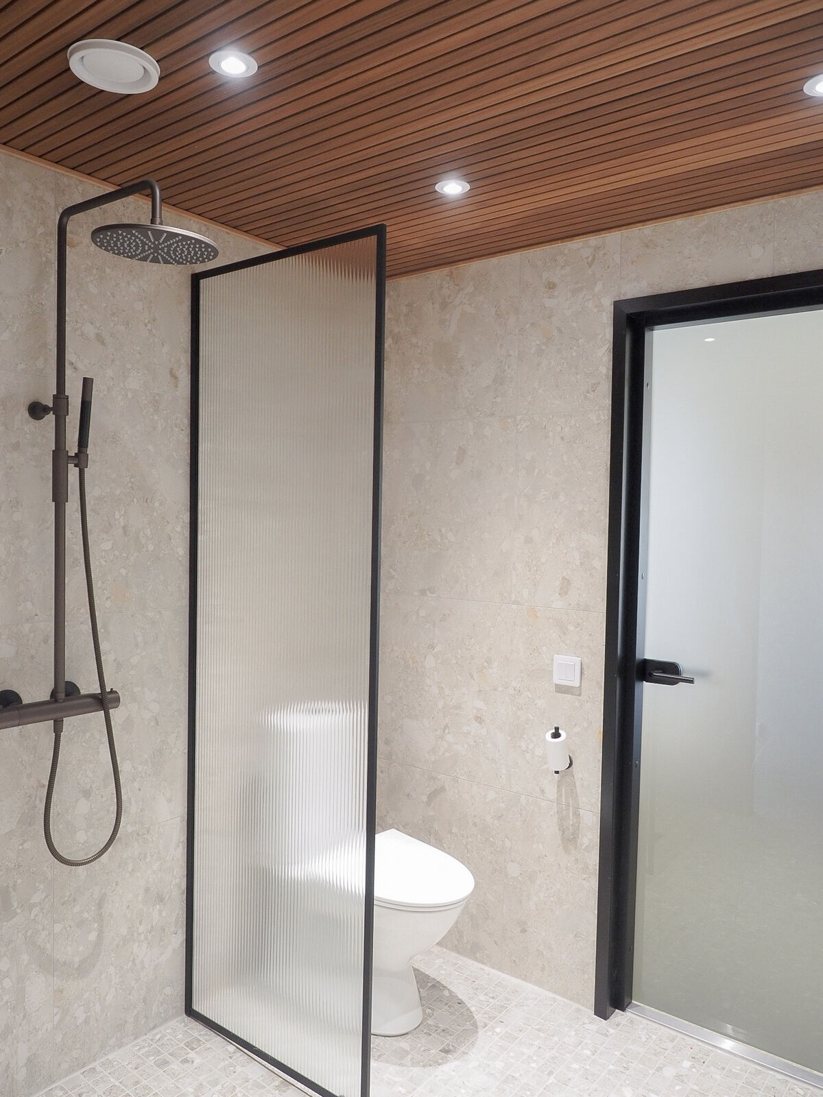 Selkeä ja moderni ratkaisu, joka tuo kylpyhuoneeseen valoisuutta ja tilantuntua.