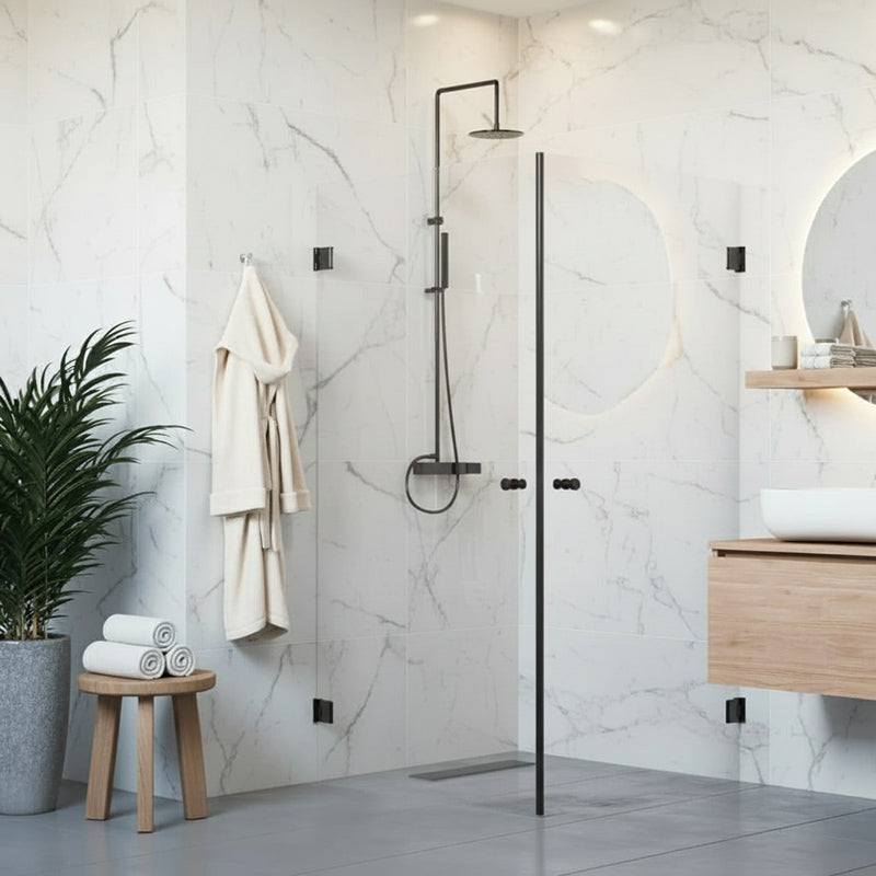 Suihkunurkka kahdella avautuvalla ovella