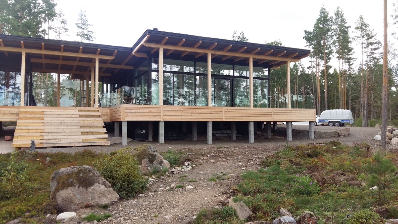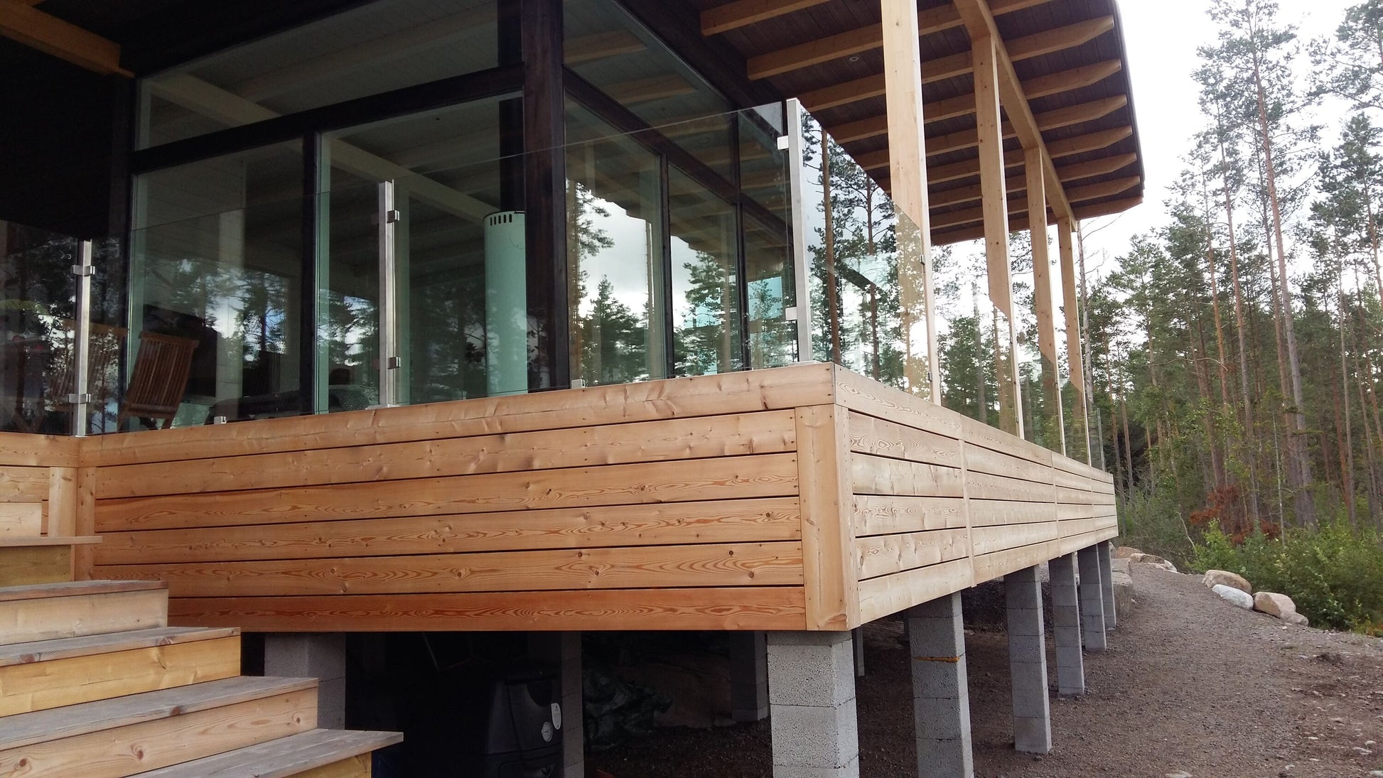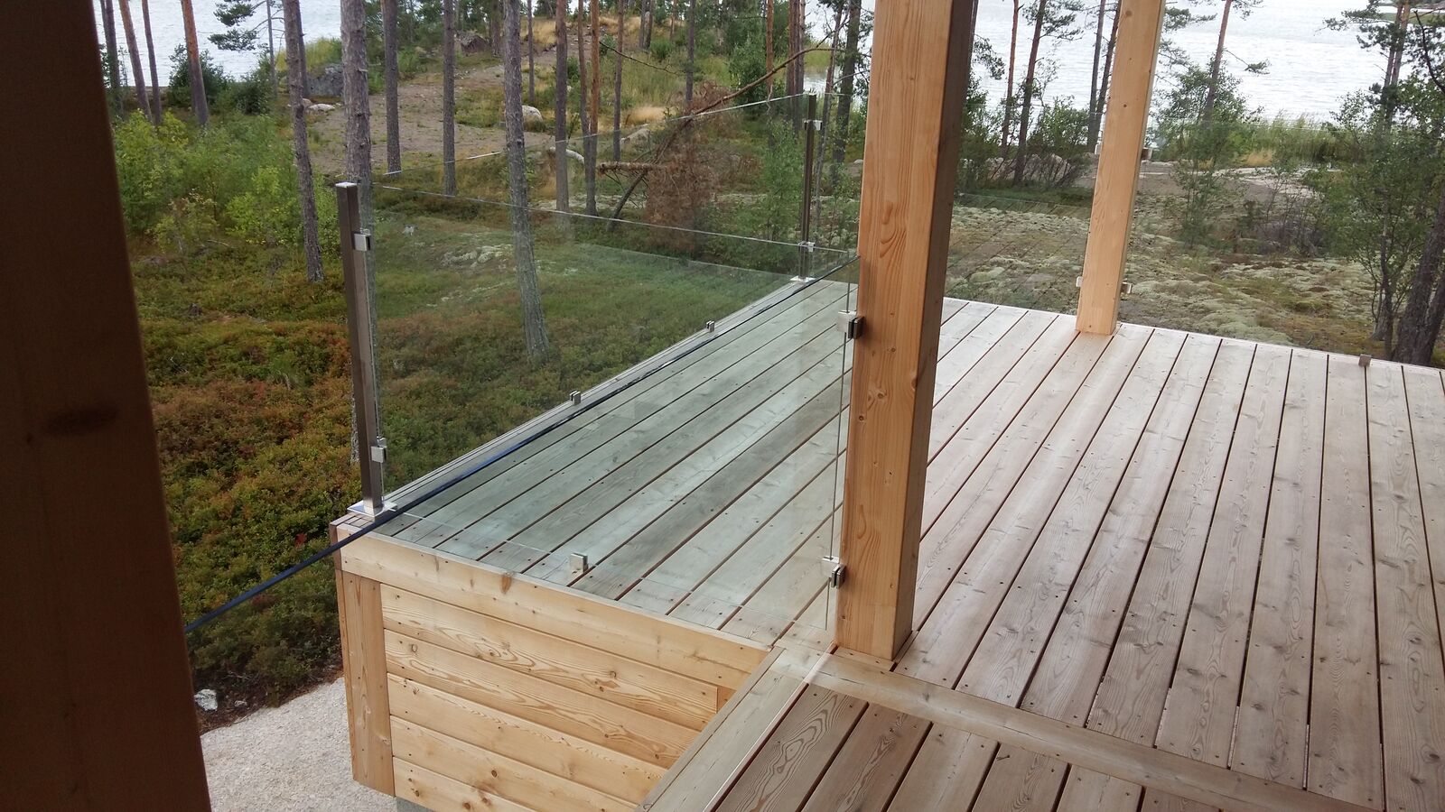 Tolpallinen lasikaide on helppo toteuttaa ja asentaa meidän rosteritolpillamme.