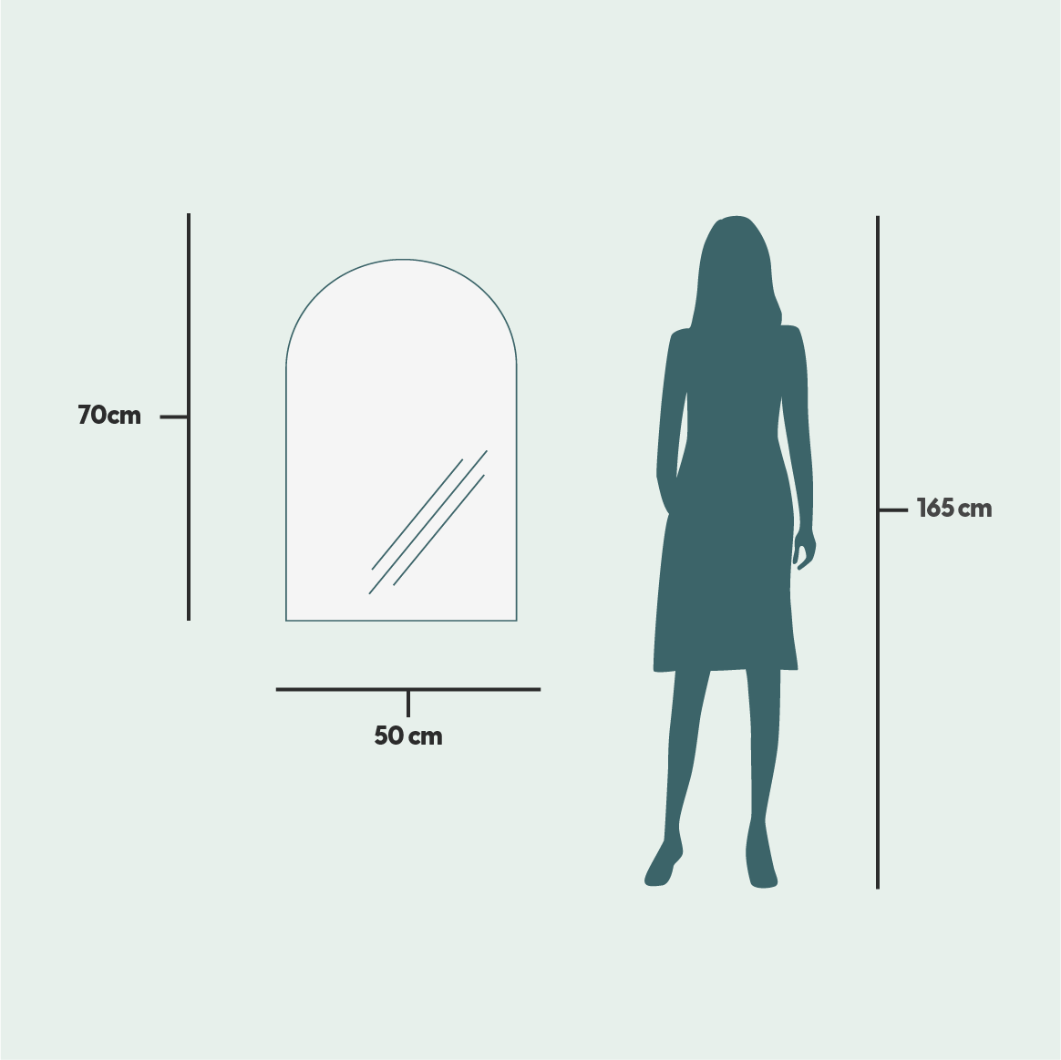 - Peilin koko on 50x70 cm