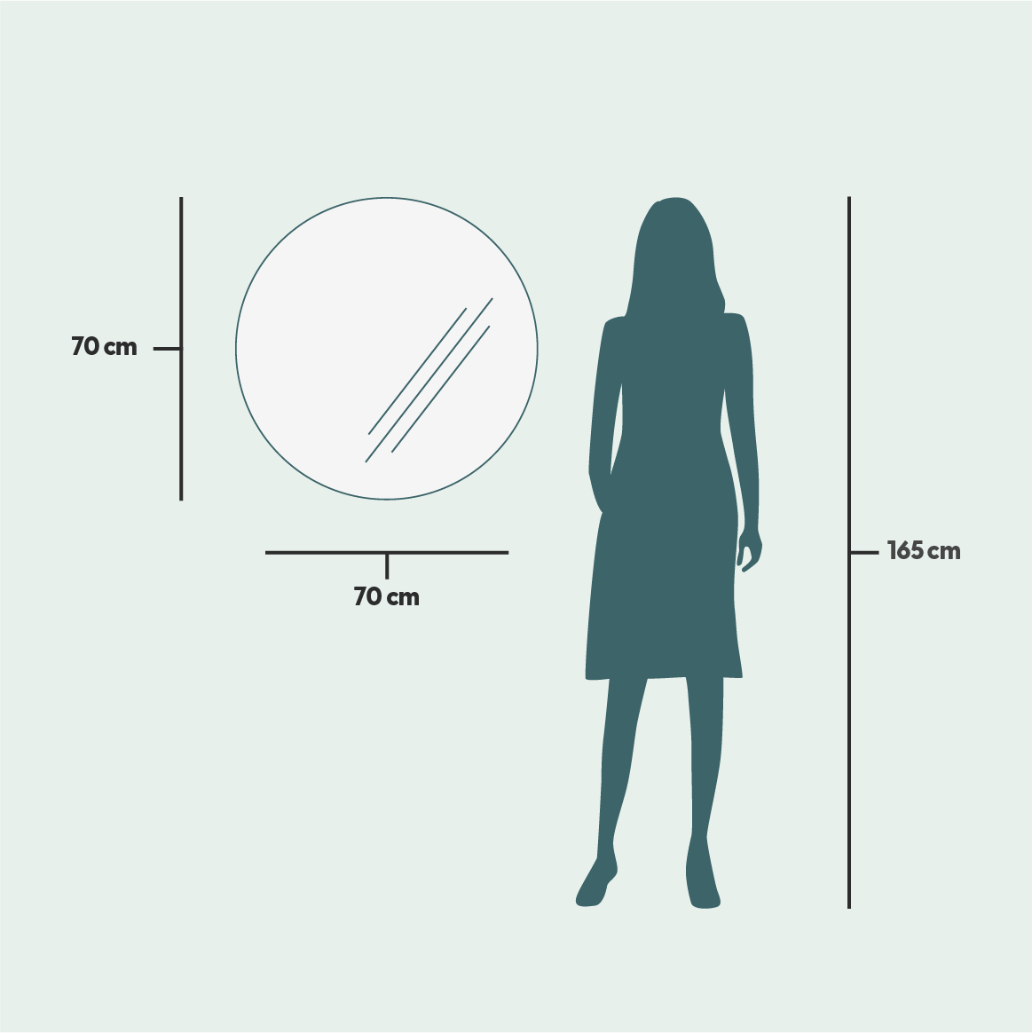 - Peilin koko on 70x70 cm