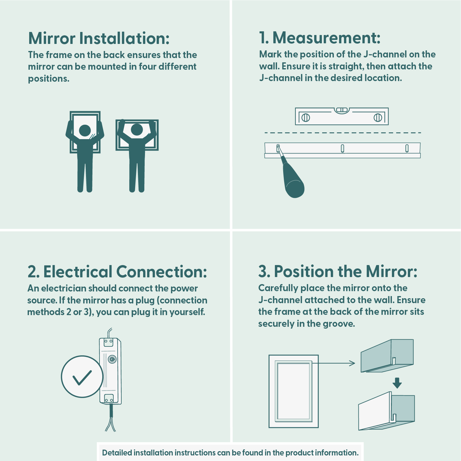 Katso viimeinen kuva, jossa on esitetty eri tavat kytkeä peiliin sähköt.