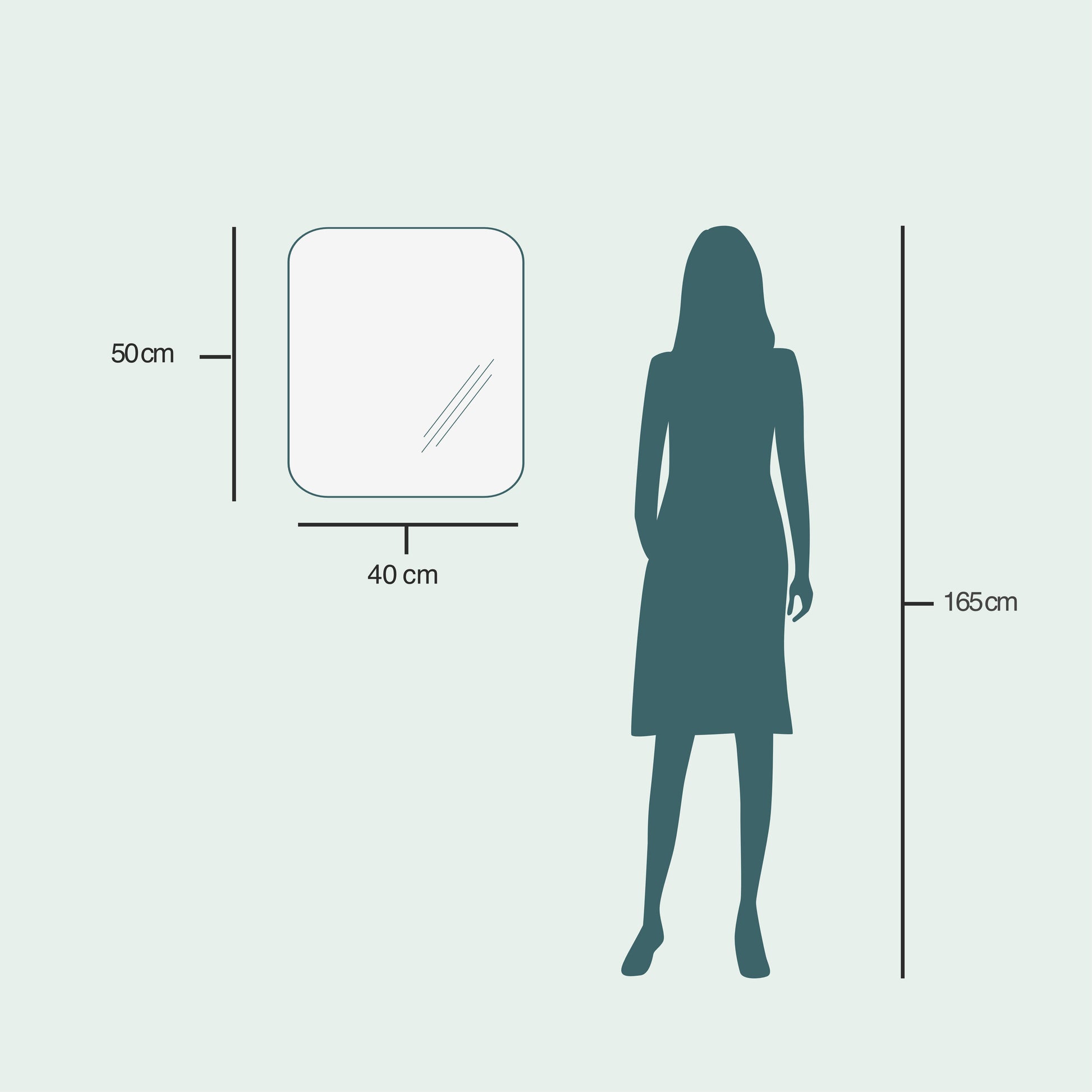 - Peilin väri on kirkas ja paksuus 4 mm, kaikki reunat on hiottu ja peilin takana on turvakalvo