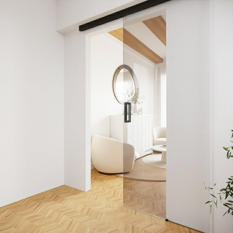 Valo Taivas on kehyksetön lasiliukuovi, joka kiinnitetään kattoon. Se on moderni ja pelkistetty ratkaisu, joka sopii yhtä hyvin välioveksi kuin tilanjakajaksi. Kehyksetön lasiovi päästää valon virtaamaan esteettä ja luo tilaan avaran, skandinaavisen ilmeen.