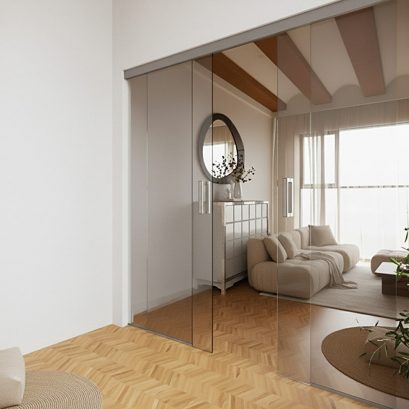 • Ovien määrä: 2 liukuovea + 2 kiinteää lasia